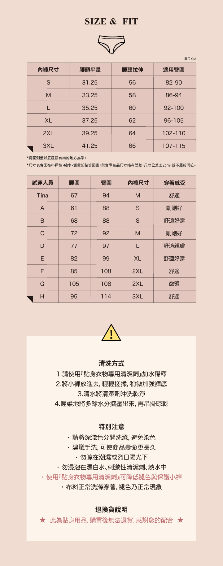 ※此款褲底布前方無車縫固定屬正常,非瑕疵