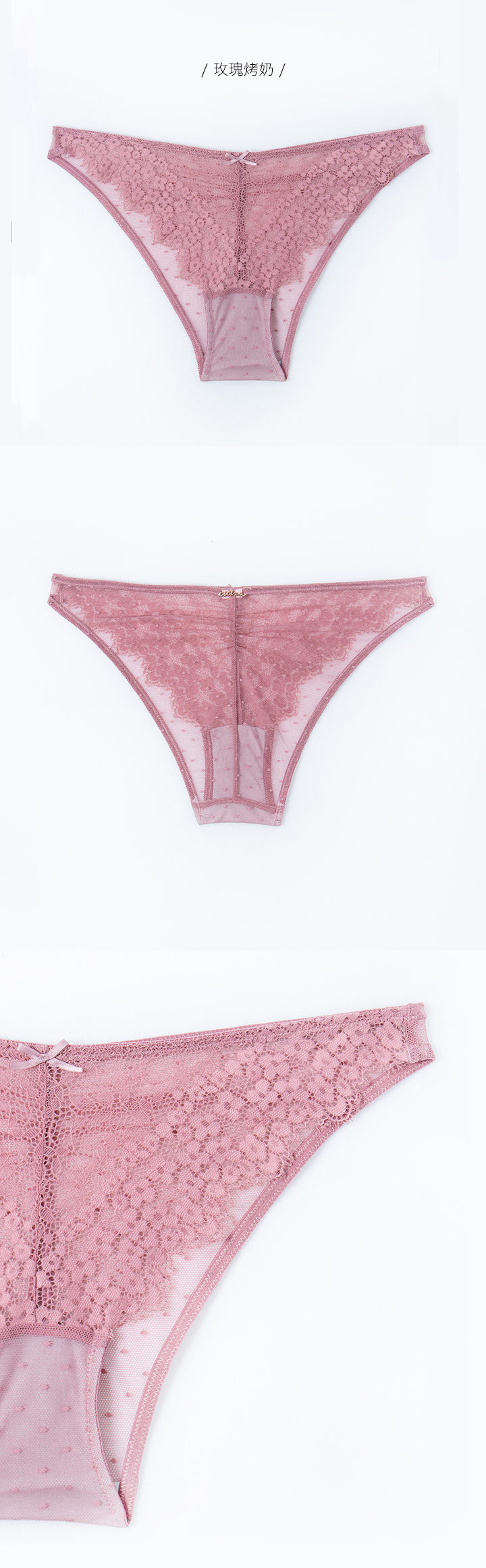 Ema.中腰蕾絲網紗高衩半包臀(玫瑰烤奶)【靚白肌面膜內褲】