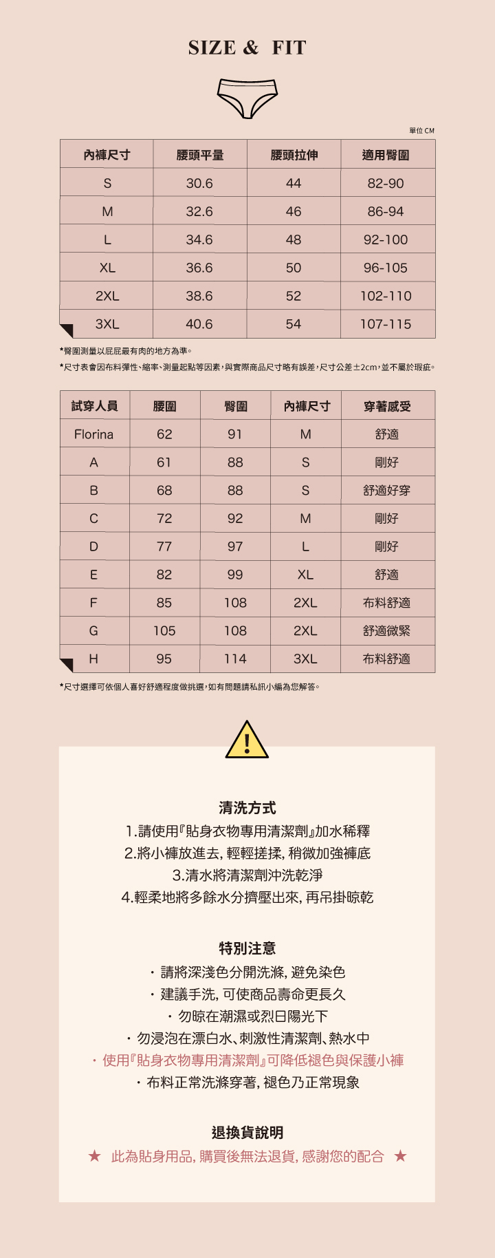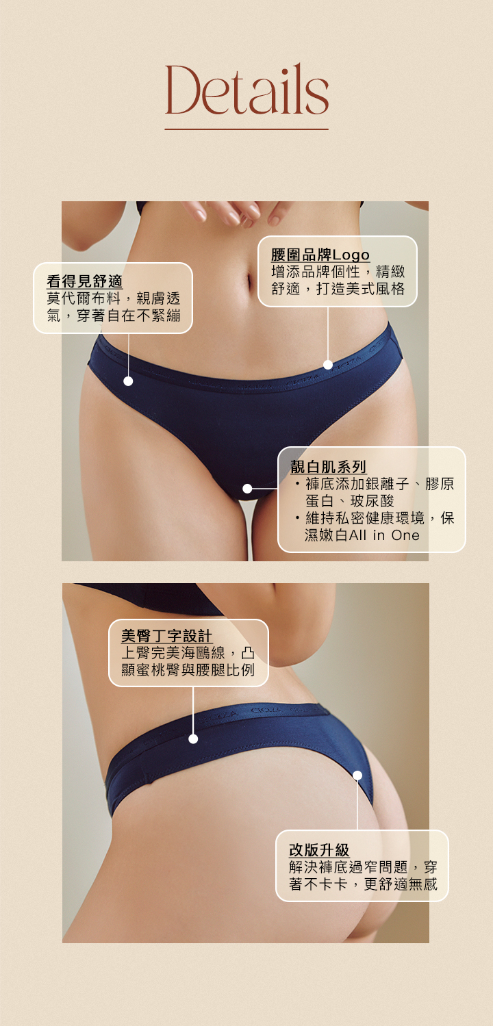 丁字設計後中布料與褲襠加寬,穿著不卡卡