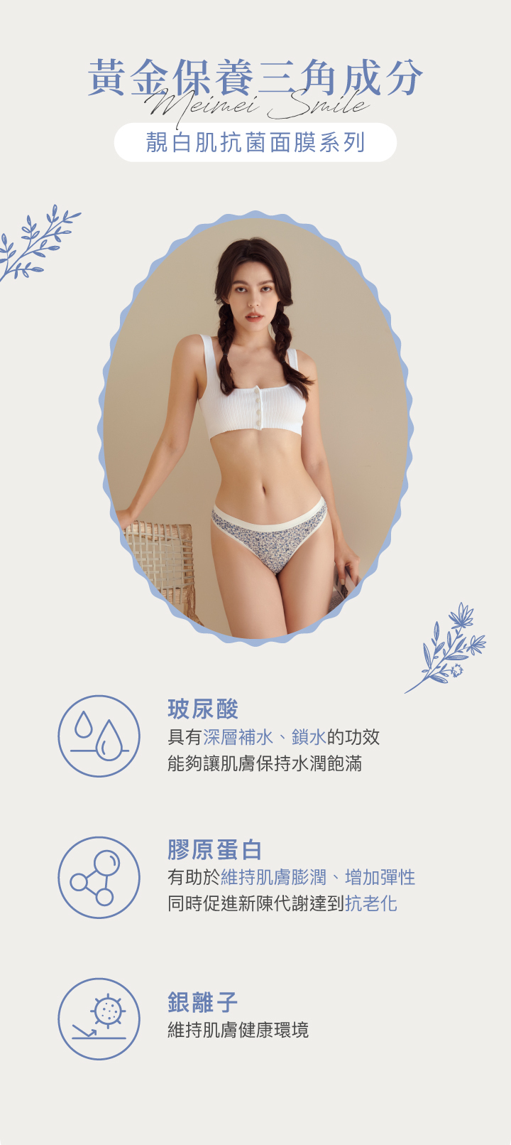 褲底添加銀離子、膠原蛋白、玻尿酸