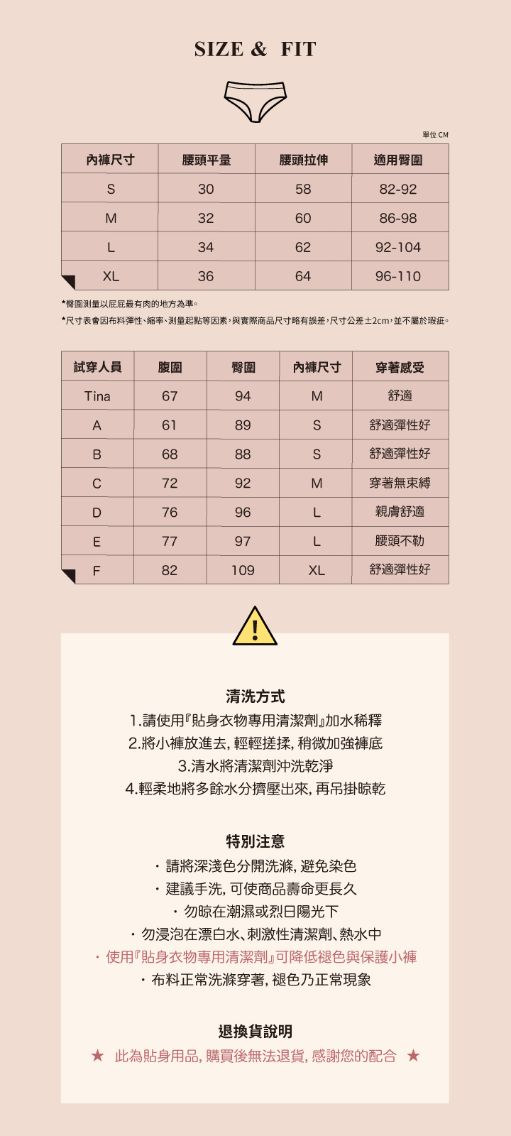 ※此款褲底布前方無車縫固定屬正常,非瑕疵