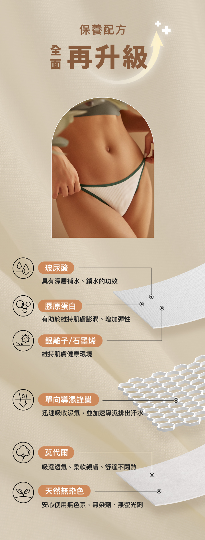 ◆ 好肌敷配方褲底 ➤ 加強保養力,提升親膚透氣性