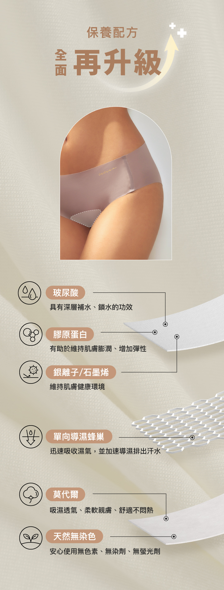 ◆ 好肌敷配方褲底 ➤ 加強保養力,提升親膚透氣性