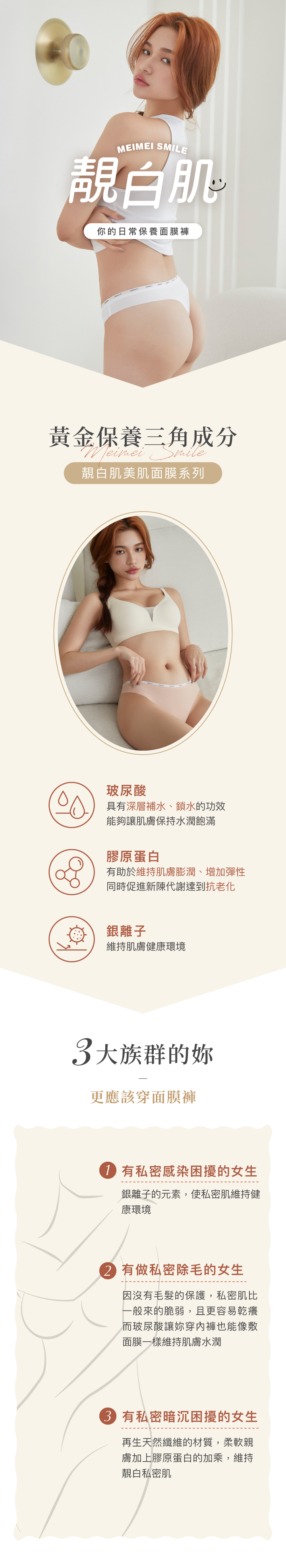 ◆ 靚白肌褲底 ➤ 淨味不乾癢,靚白水嫩更Q彈